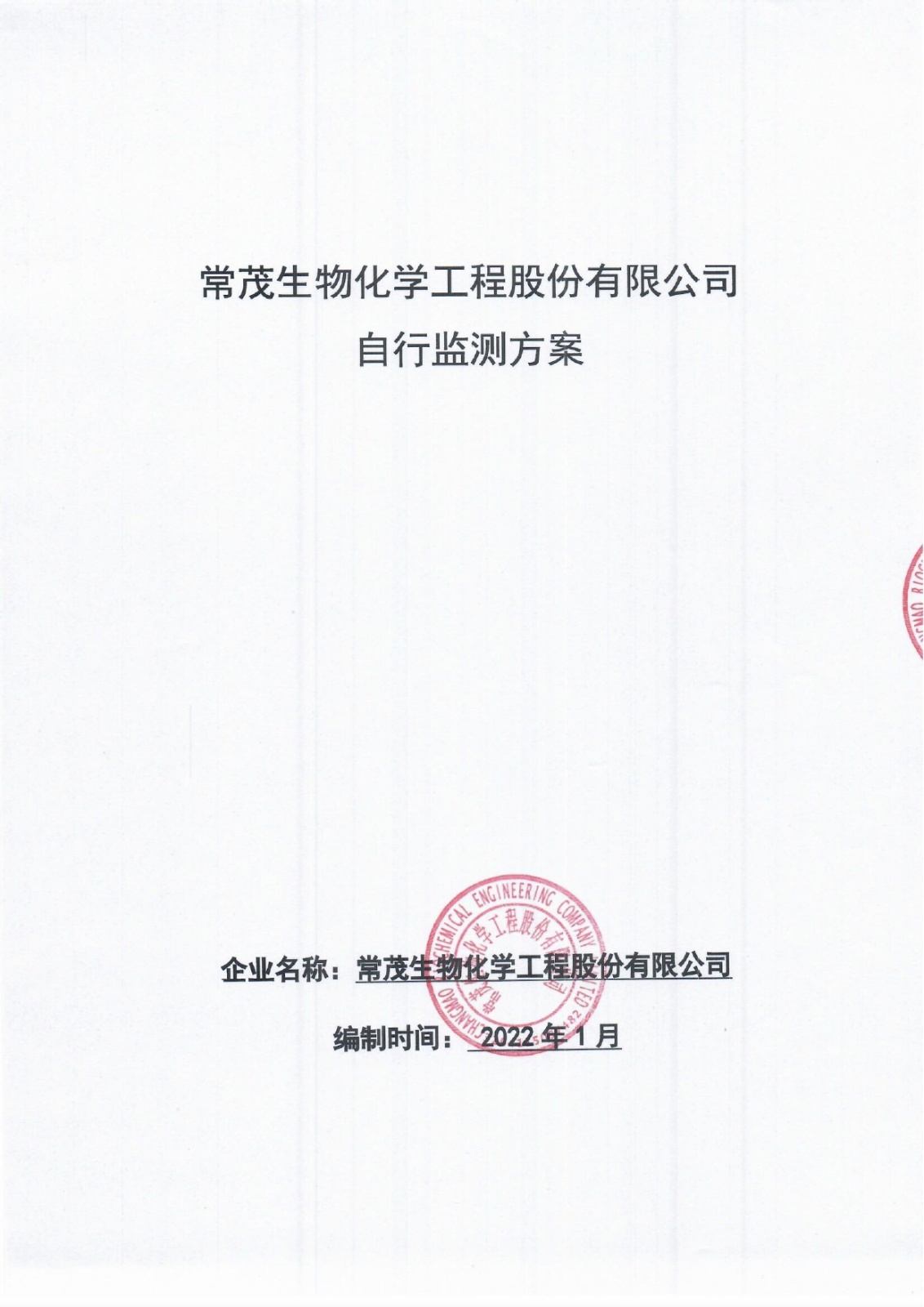 2022年度 常茂生物化學(xué)工程股份有限公司自行監(jiān)測(cè)方案