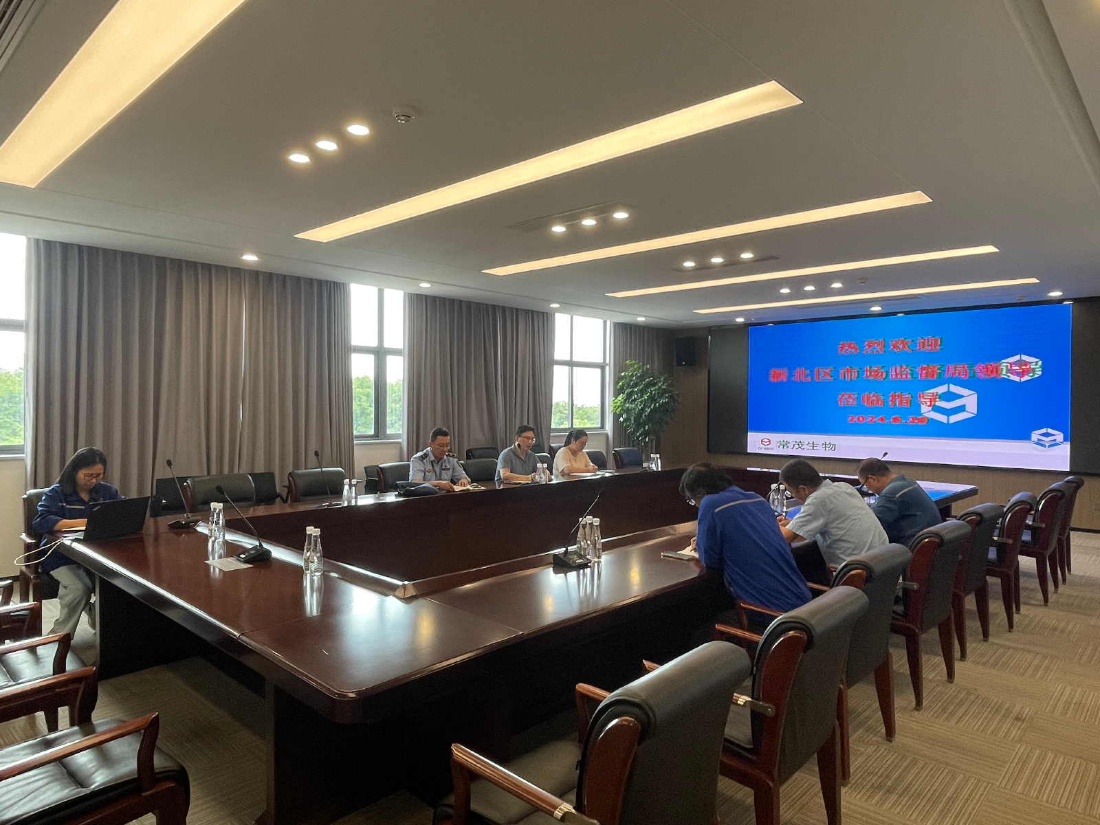 2024年8月20日,常州市新北區市場監督管理局路科一行對公司藥品事業項目開展市場調研,并介紹了政府規劃和政策支持,對需要關注的重點提出了建議。公司總經理潘春、副總經理萬屹東等參與接待。